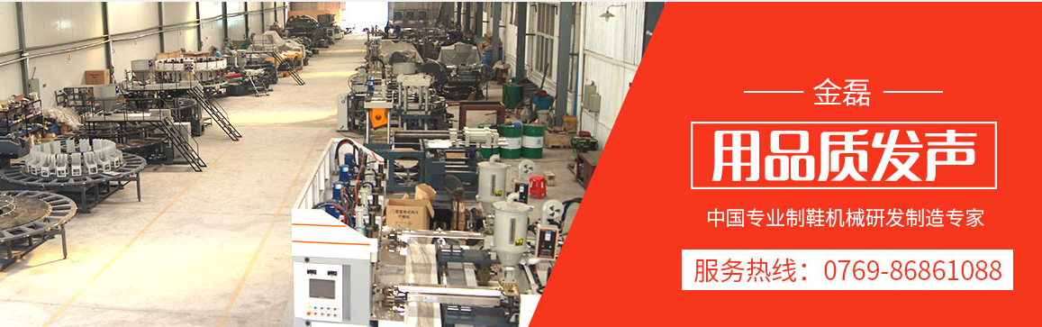 東莞金磊制鞋機械有限公司主要是一家集研發(fā)、設(shè)計、制造、銷售于一體的專業(yè)鞋機生產(chǎn)企業(yè),專業(yè)生產(chǎn)各種可注 塑TPR、PVC、TPU、TR、EVA、RB、ABS、PCU、ASR、PP、PE、TPE等各種類型及不同的 軟硬度之材料;專業(yè)生產(chǎn)的產(chǎn)品有PVC吹氣拖鞋機,水晶鞋、網(wǎng)鞋、果凍鞋成型機,TPU鞋 底成型機,單、雙、三色雨鞋(水鞋)機,單、雙、三色TPR、TPU、PVC、TR、鞋底注塑 機,單、雙、三色TR鞋底機,EVA拖鞋注塑鞋,硅膠、橡膠射出成型機,PVC鞋底、鞋帶機等系 列制鞋設(shè)備及相應(yīng)各類鞋機。