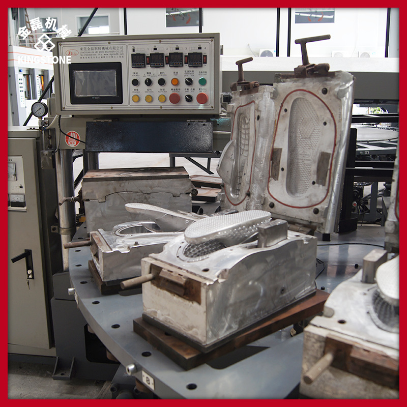 圓盤在旋轉(zhuǎn)過程中,各工位之間的銜接緊密流暢,生產(chǎn)速度大幅提升,從而有效提高了產(chǎn)量。例如,在連續(xù)生產(chǎn)過程中,上一工位完成注射后,圓盤能迅速轉(zhuǎn)動(dòng)至下一工位進(jìn)行后續(xù)操作,減少了工序間的時(shí)間浪費(fèi)。 強(qiáng)大的安全保障功能:配備緊急圓盤可逆轉(zhuǎn)功能,當(dāng)生產(chǎn)過程中出現(xiàn)異常情況時(shí),如原料堵塞、模具故障等,系統(tǒng)能立即觸發(fā)緊急逆轉(zhuǎn)程序,使圓盤迅速反轉(zhuǎn),排除異常狀況,有效提高了操作安全性,保護(hù)設(shè)備和操作人員免受損害。 靈活的生產(chǎn)模式選擇:具有多種站別數(shù)量可供選擇,企業(yè)可根據(jù)自身生產(chǎn)需求,靈活配置鞋機(jī)站別。既適用于少量多樣的個(gè)性化訂單生產(chǎn),也能滿足大量生產(chǎn)的需求,增強(qiáng)了鞋機(jī)對(duì)不同生產(chǎn)場(chǎng)景的適應(yīng)性。