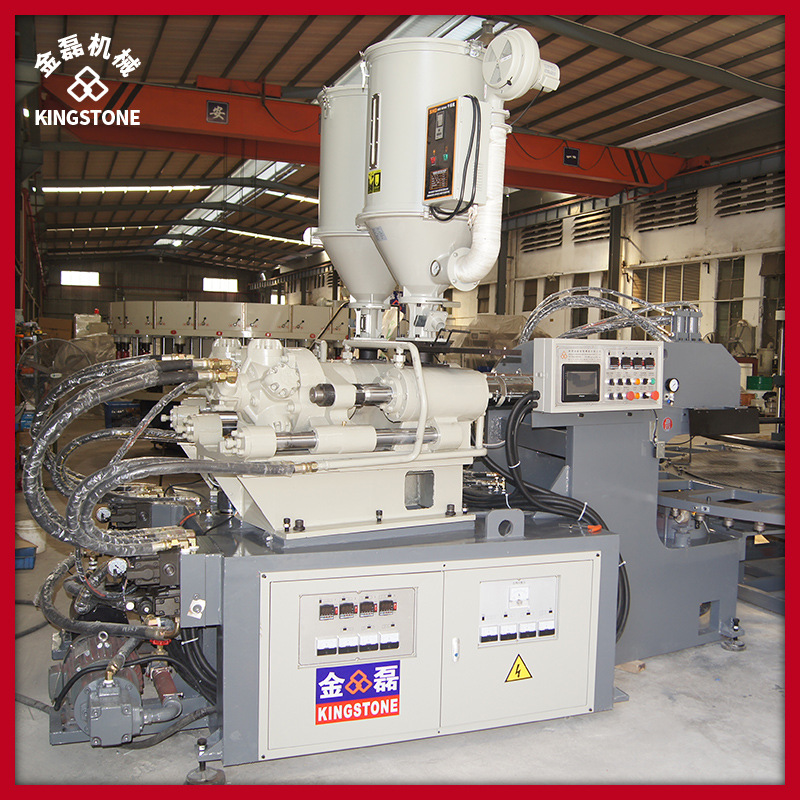二. 雨鞋機(jī)器其生產(chǎn)的雨鞋機(jī)器專門用于生產(chǎn)熱可塑性單 色、雙色、三色等各種不同高度的男女塑料 PVC/TPR雨鞋等。采用兩段式壓力控制射出 系統(tǒng),料管溫度采用PID四段控制,確保產(chǎn)品品質(zhì)更好。同時,氣壓式輔助脫模設(shè)計,使產(chǎn)品取出更加容易。