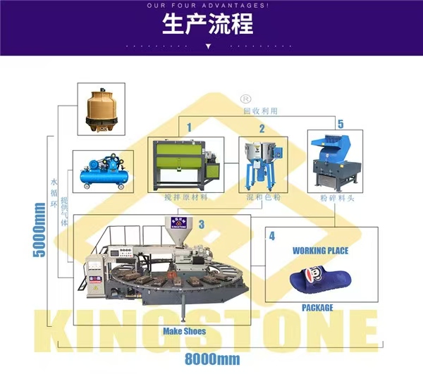 此外,機(jī)器還具有各種保護(hù)裝置,確保操作安全。 適用范圍廣:可生產(chǎn)多種類型的鞋子,包括涼鞋、運(yùn)動(dòng)鞋、皮鞋雨鞋等。同時(shí), 還可使用不同的原料,如PVC、TPR、 TPU、 TR、EVA等。