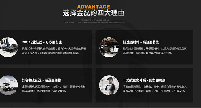 金磊制鞋機(jī)械一直以來是以給制鞋企業(yè)用戶提供的生活解決方案是目的,努力提供優(yōu)質(zhì)的鞋機(jī)產(chǎn)品是實現(xiàn)的最主要手段,不論時代如何發(fā)展,金磊制鞋機(jī)械的目的始終如一,變換的只是手段而已。